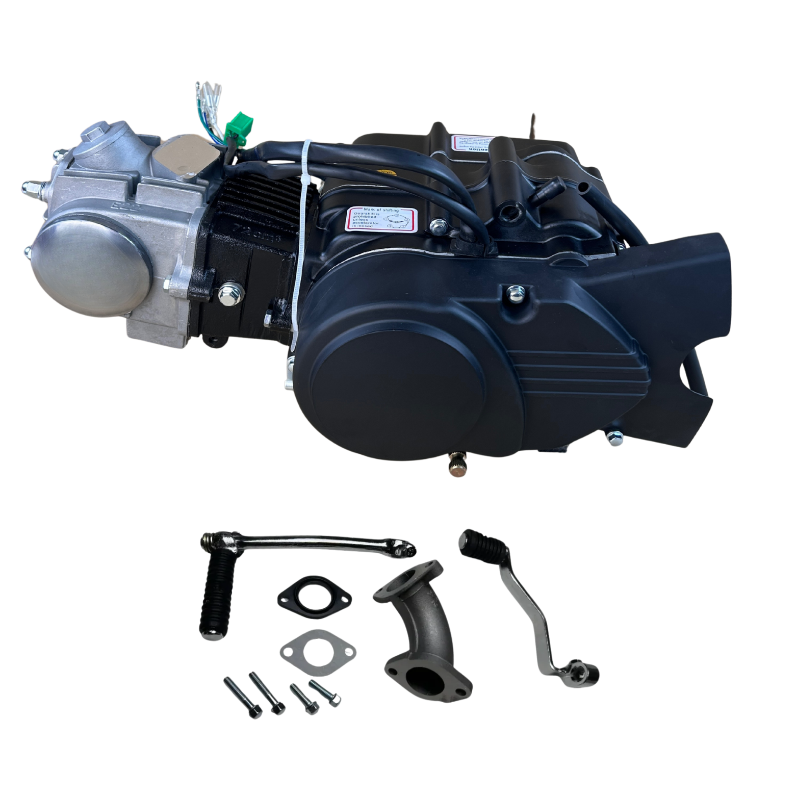 Inclusief bougie, spruitstuk, kickstartpedaal, schakelpedaal en voortandwiel.