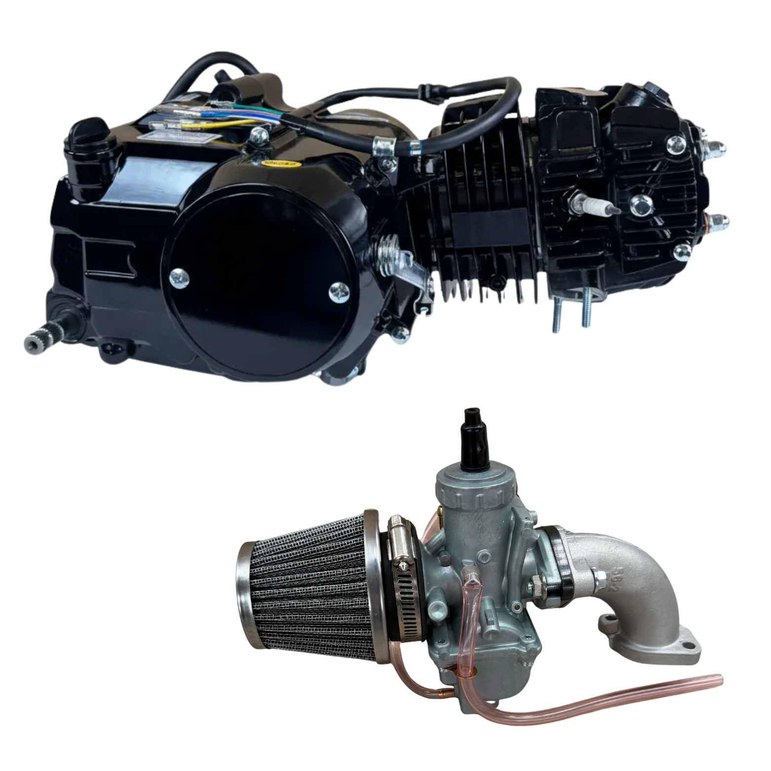 Complete set bestaande uit een 125cc horizontaal motorblok inclusief VM24 carburateur kit, spruitstuk en luchtfilter. Ideaal als upgrade of vervanging van een origineel motorblok.