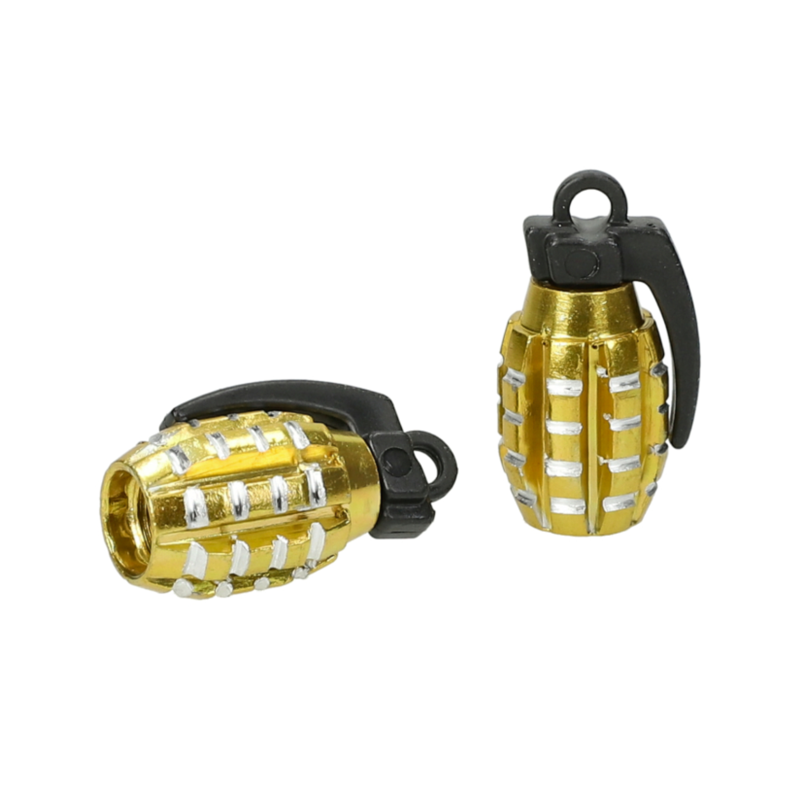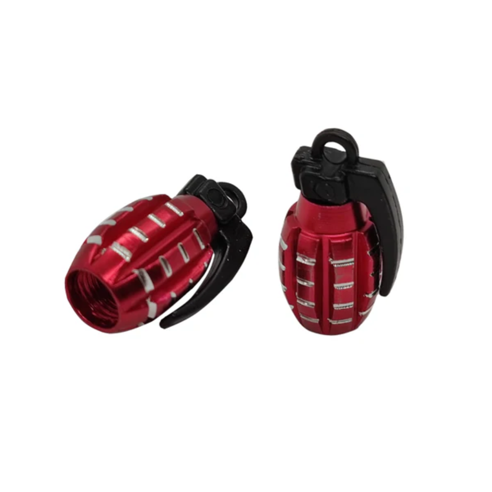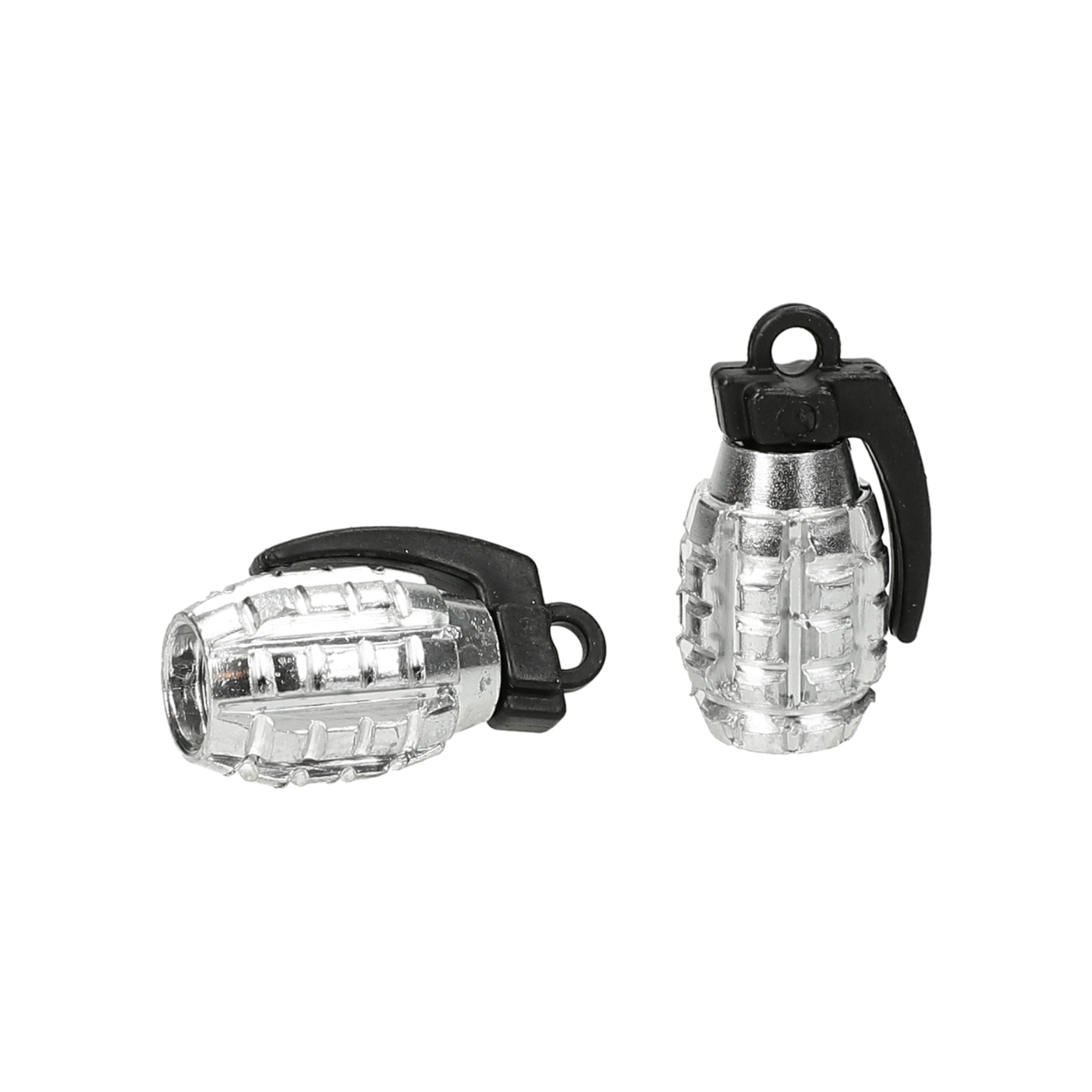 Geef je voertuig een stoere look met deze granaatvormige ventieldopjes. De dopjes zijn gemaakt van licht en duurzaam aluminium en passen op alle standaard Schrader-ventielen (zoals gebruikt bij auto’s, motoren, scooters en fietsen).