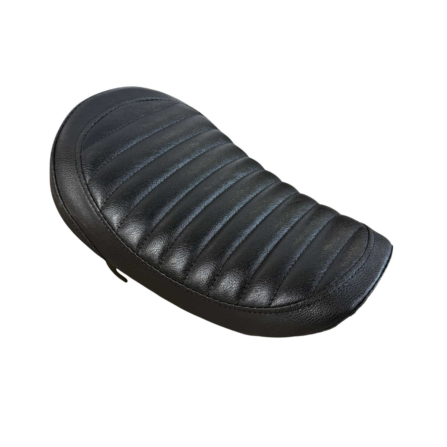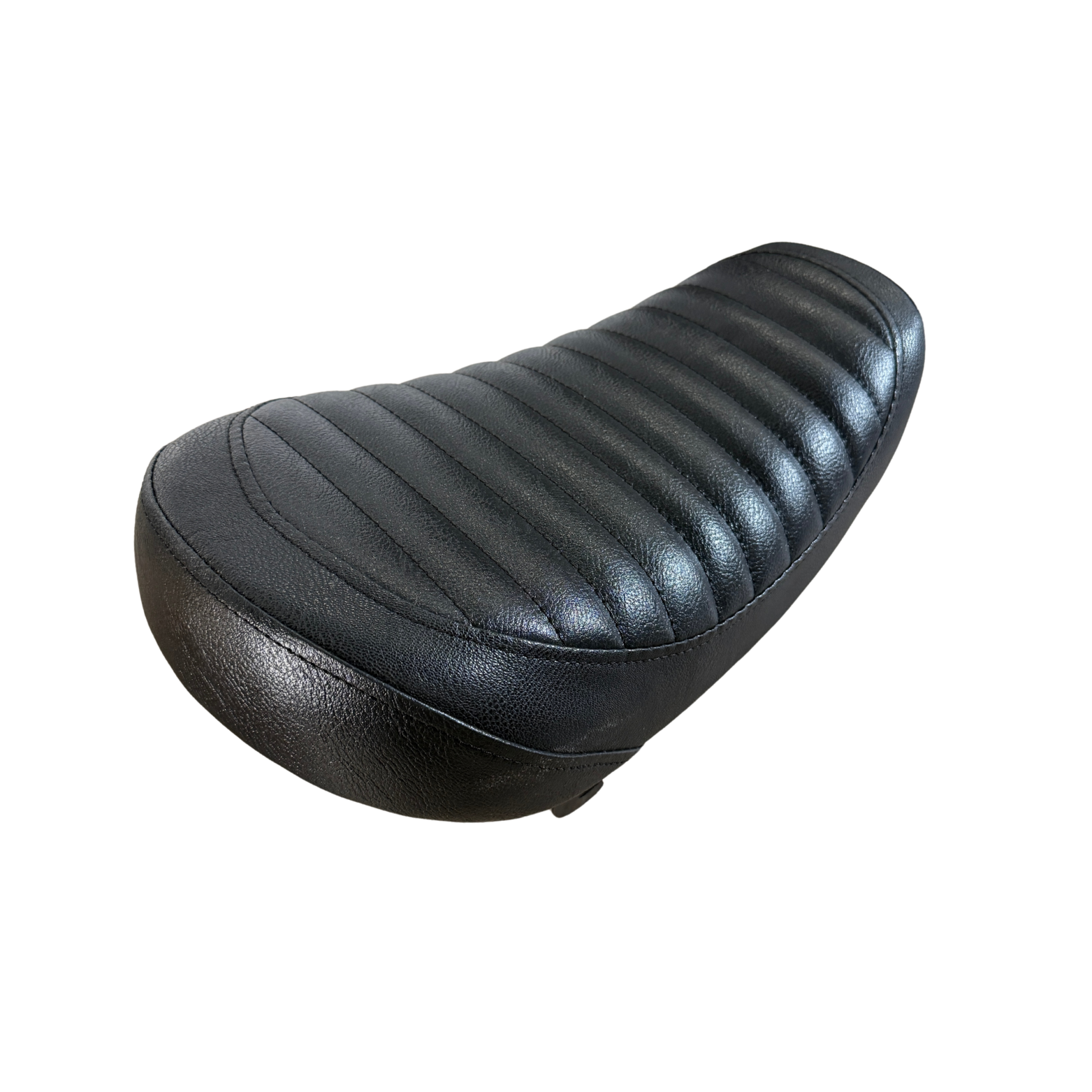 Laag uitgevoerd zadel in zwart skai met gestikte lijnen. Het zadel heeft een ingesneden (banaan) vorm en is geschikt voor Honda Monkey Z50J en diverse replica’s zoals Singa, Chimp en Skymini.