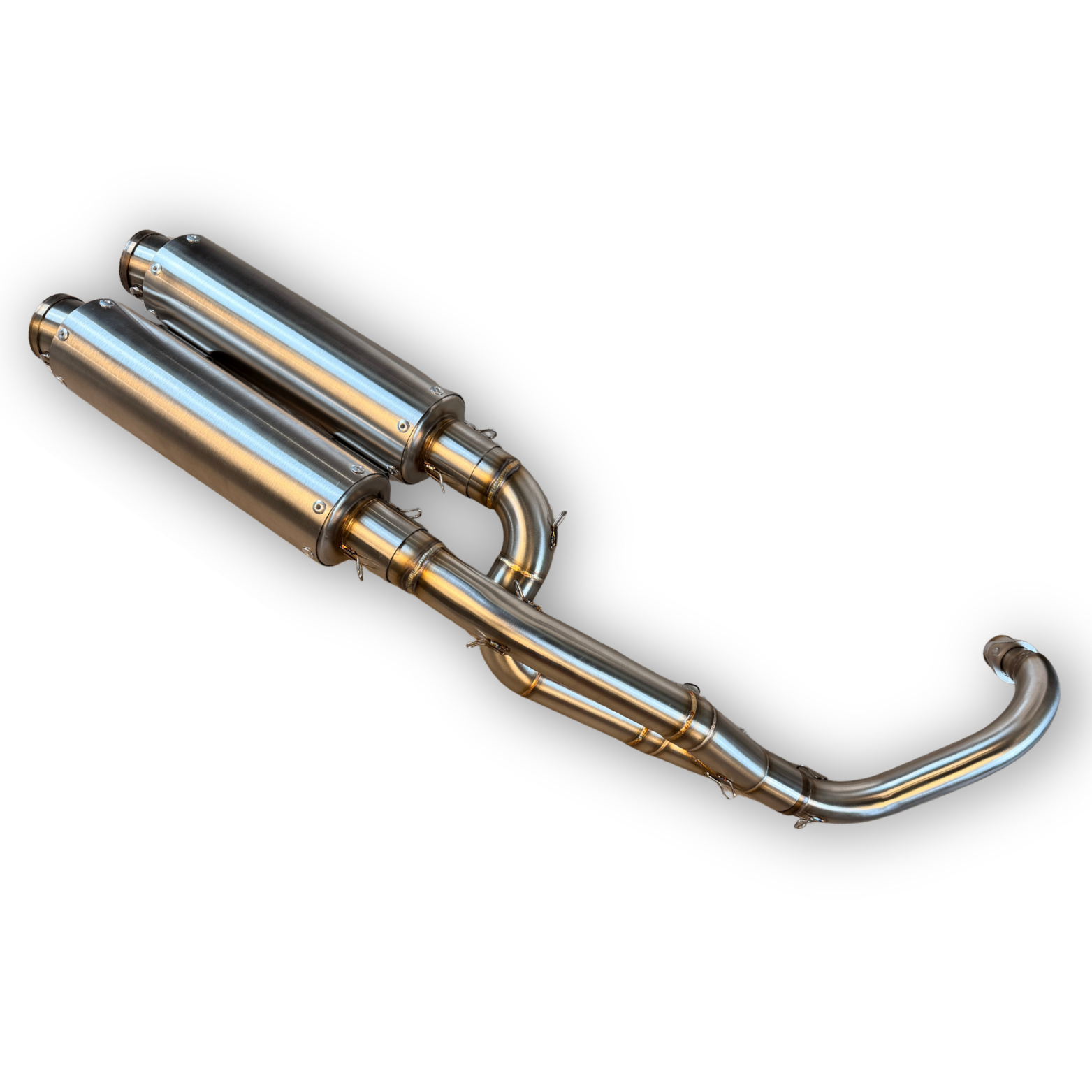 Dubbele zijuitlaat uitgevoerd in roestvrij staal, geschikt voor Honda Dax en Monkey en diverse replica’s zoals Skyteam, TNT City, Zhenhua - 50cc tot 125cc.