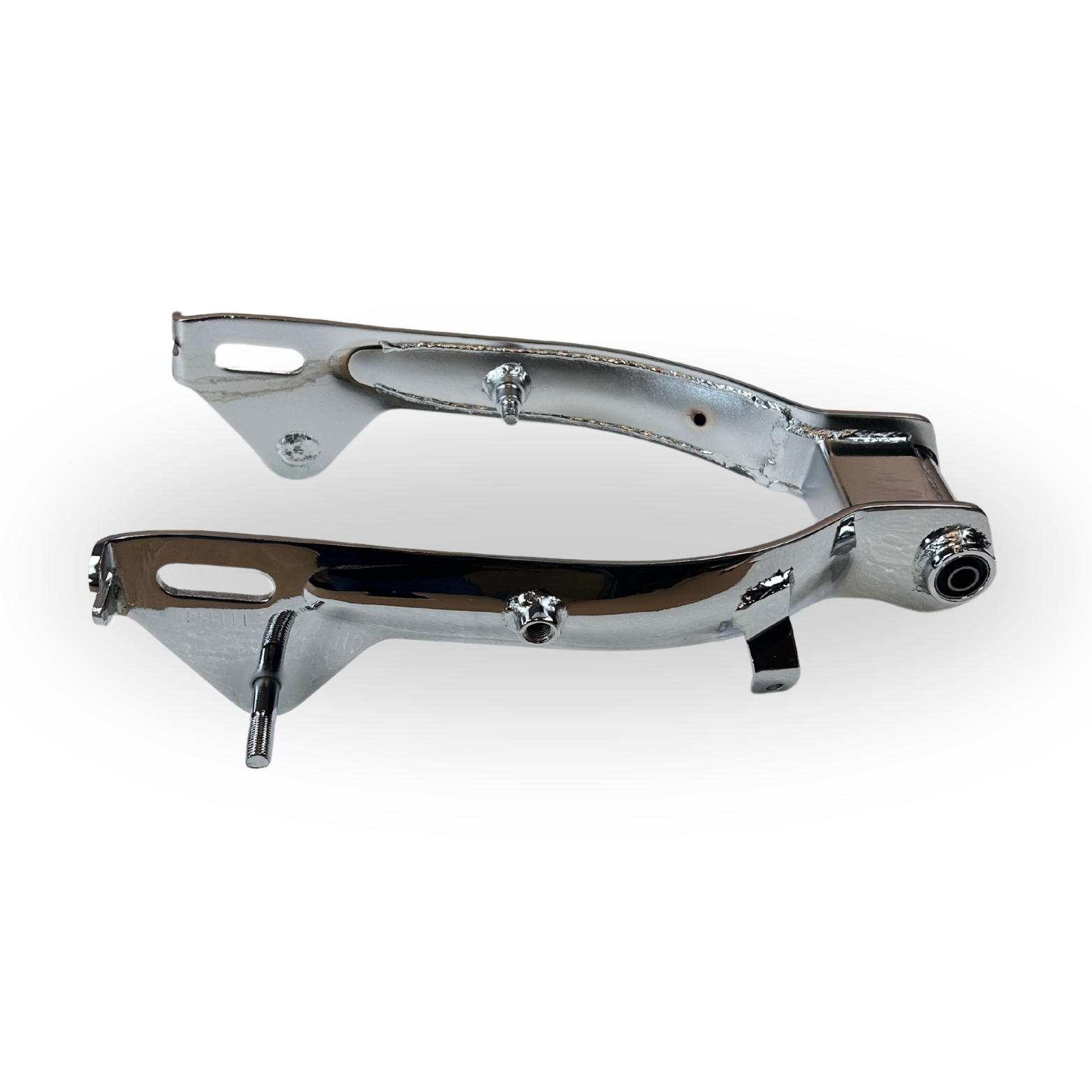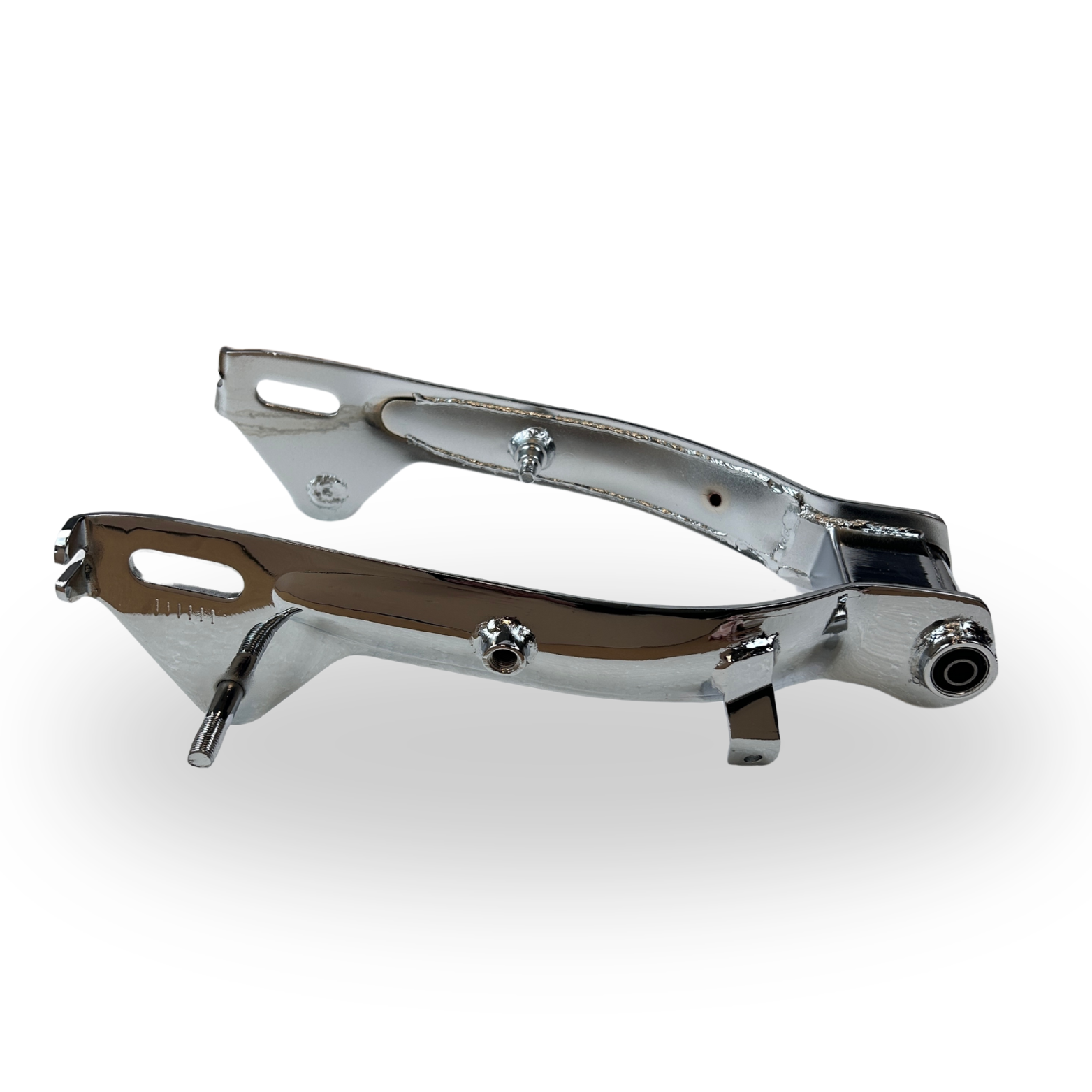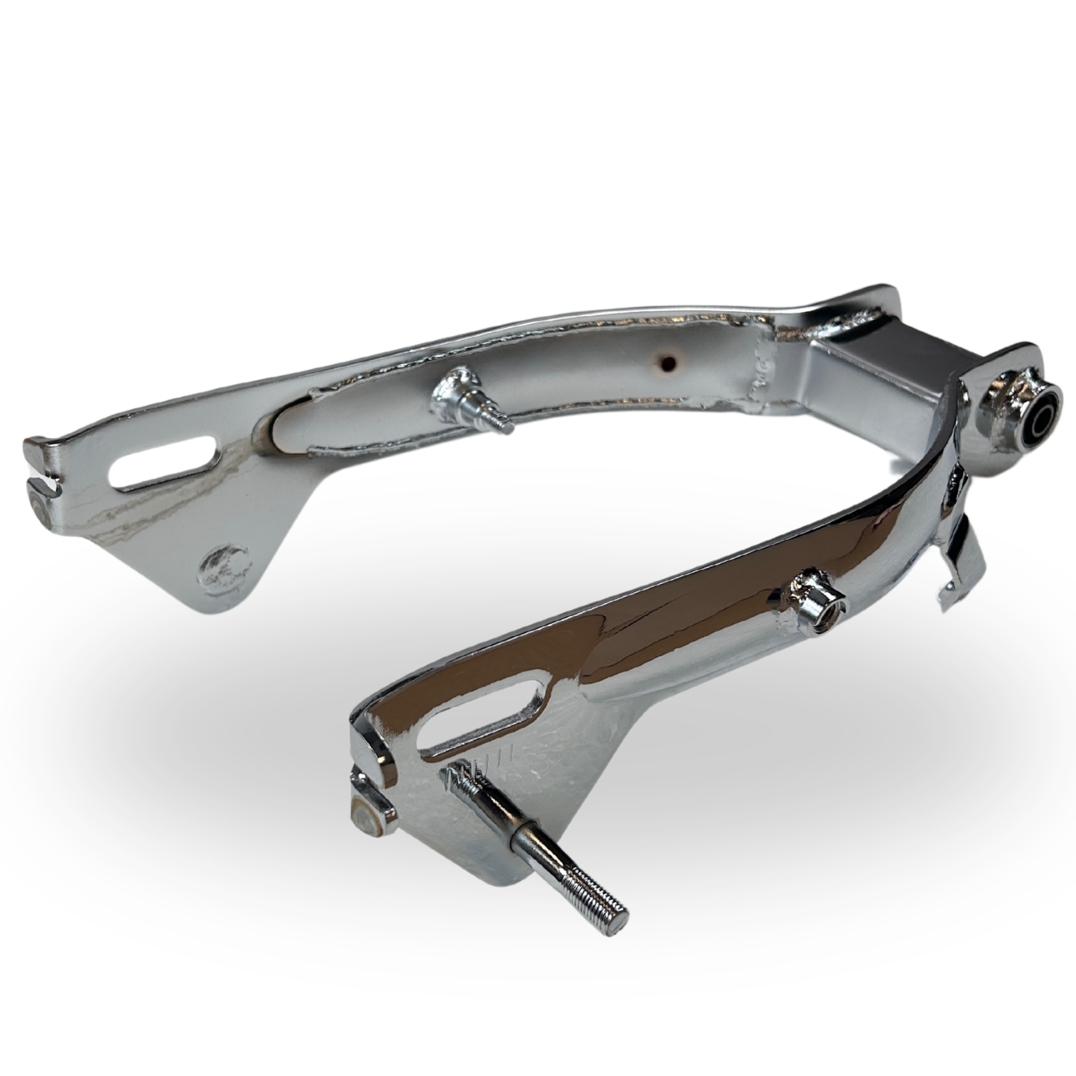 Stijlvolle en duurzame standaard achterbrug, geschikt voor alle Honda Dax modellen. Deze achterbrug heeft een originele standaard lengte en is voorzien van een hoogwaardige chrome plated afwerking die zorgt voor een strakke en klassieke look. Ideaal als vervanging van een versleten achterbrug of voor een custom project waarbij een nette, originele stijl gewenst is.
