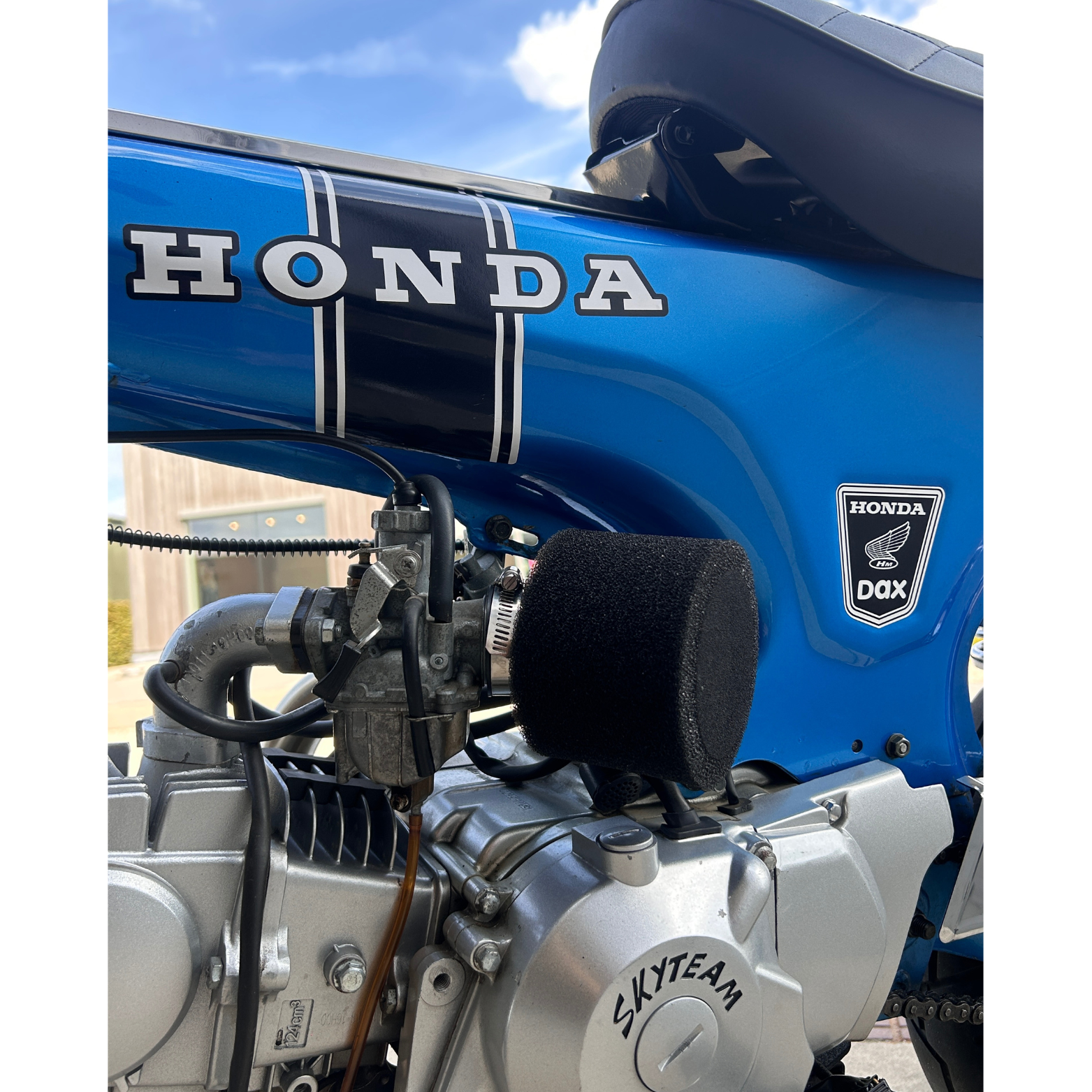 Open luchtfilter vervaardigd uit volledig zwarte mousse. Door het gebruikte materiaal biedt deze filter een betere bescherming tegen regen in vergelijking met standaard open luchtfilters.